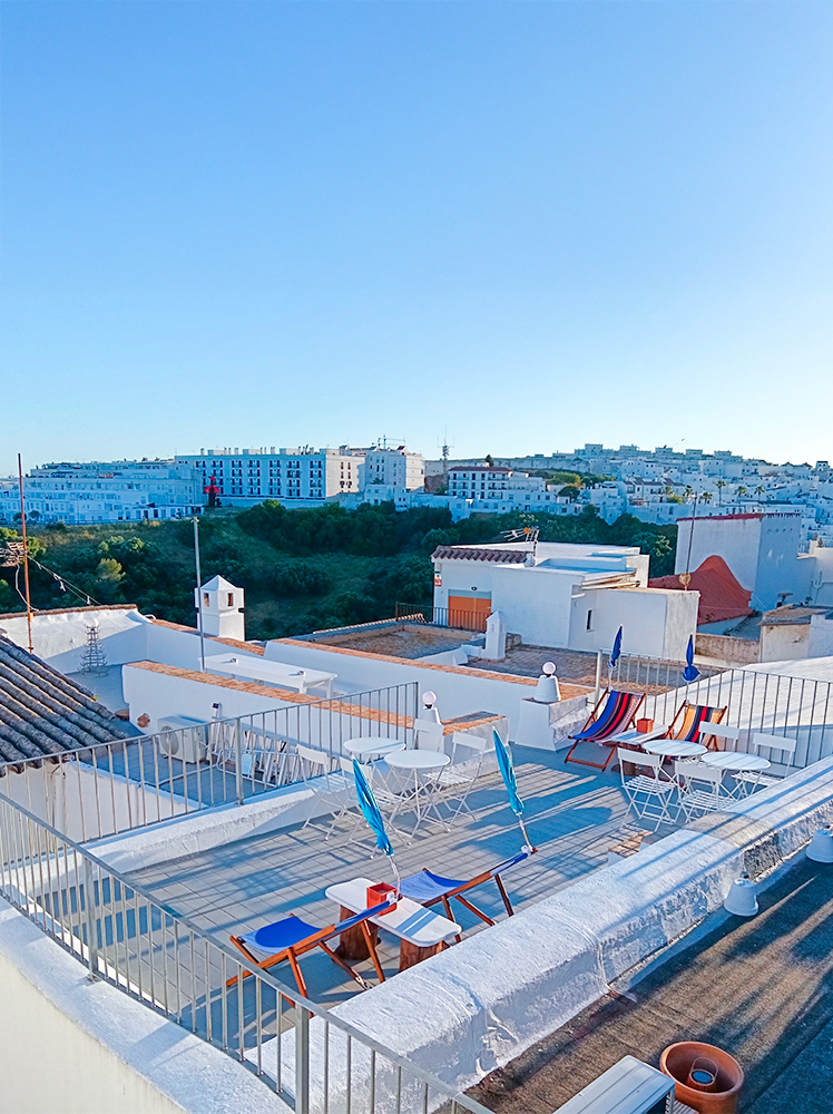 Terraza amueblada en la azotea con vistas al mar y a la costa africana